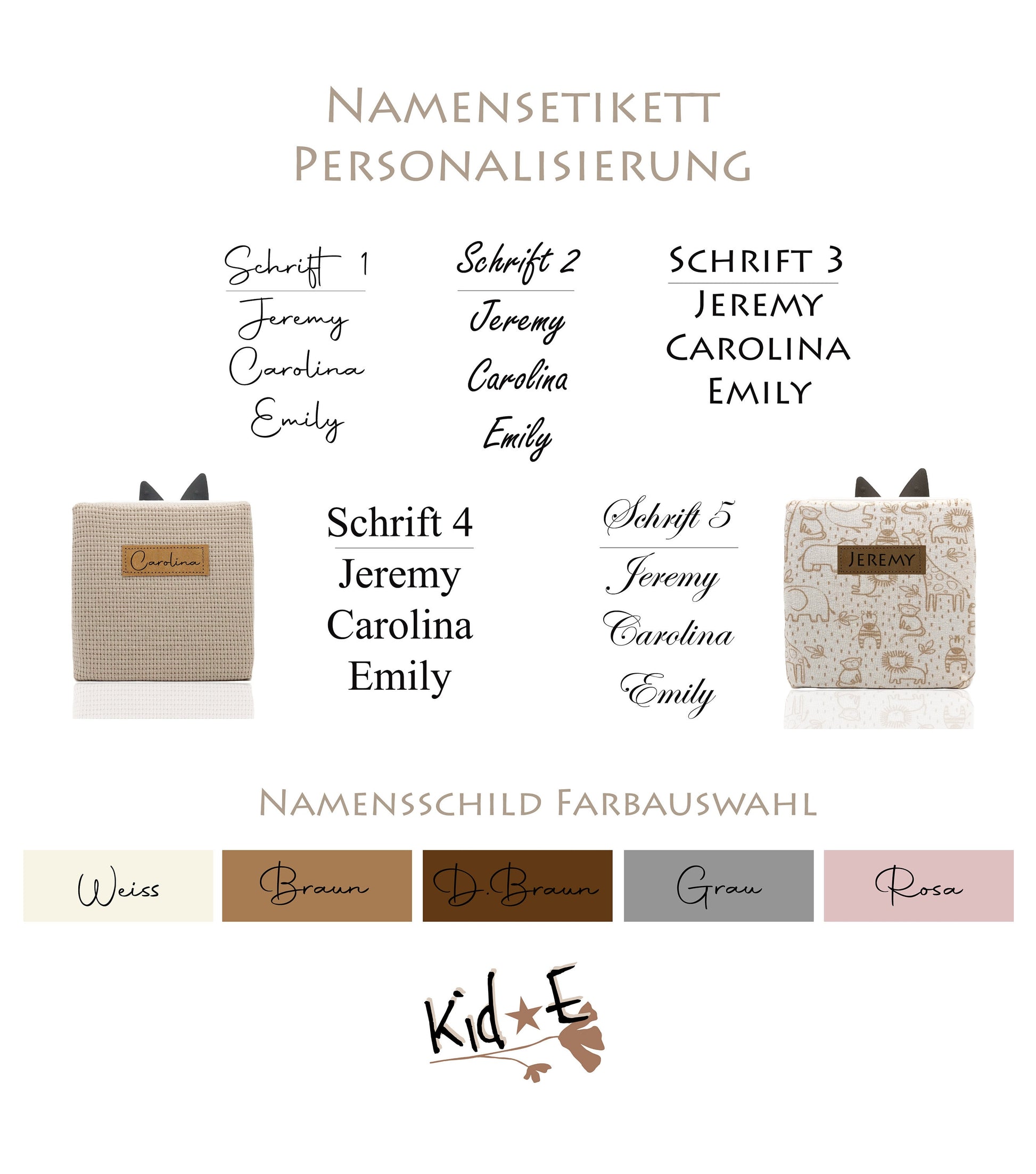 • Farbe des Namensschildes: Weiß / Braun / Dunkelbraun / Grau / Rosa